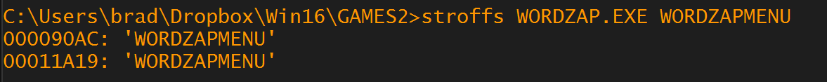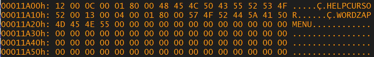 Opening the .exe file in AppStudio showed the menu had a string name of “WORDZAPMENU”: